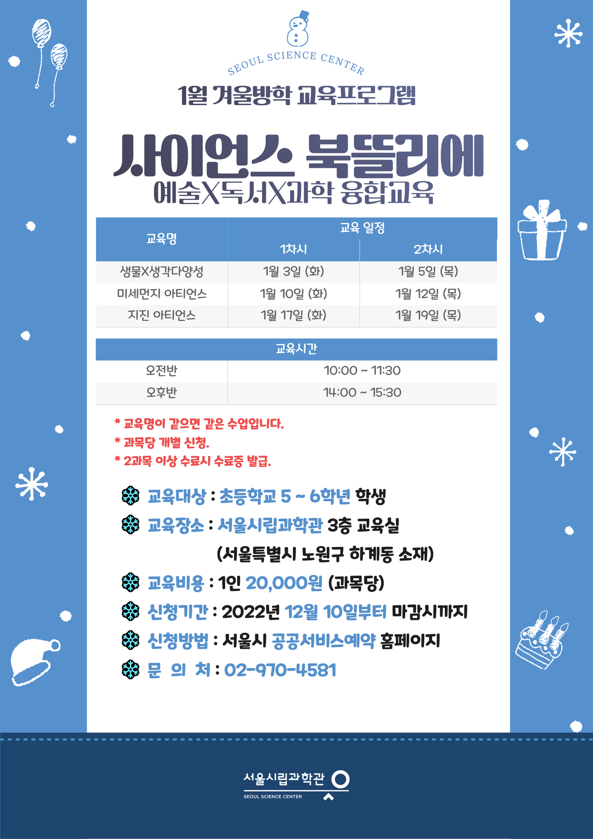 서울시립과학관 - 1월 겨울방학 교육프로그램