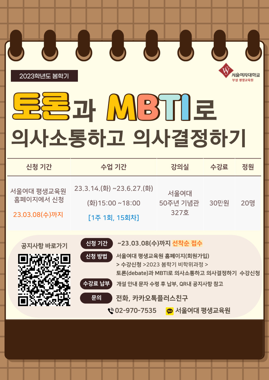 2023학년도 봄학기 평생교육원 비학위과정- 토론(Debate)와 MBTI로 의사소통하고 의사결정하기