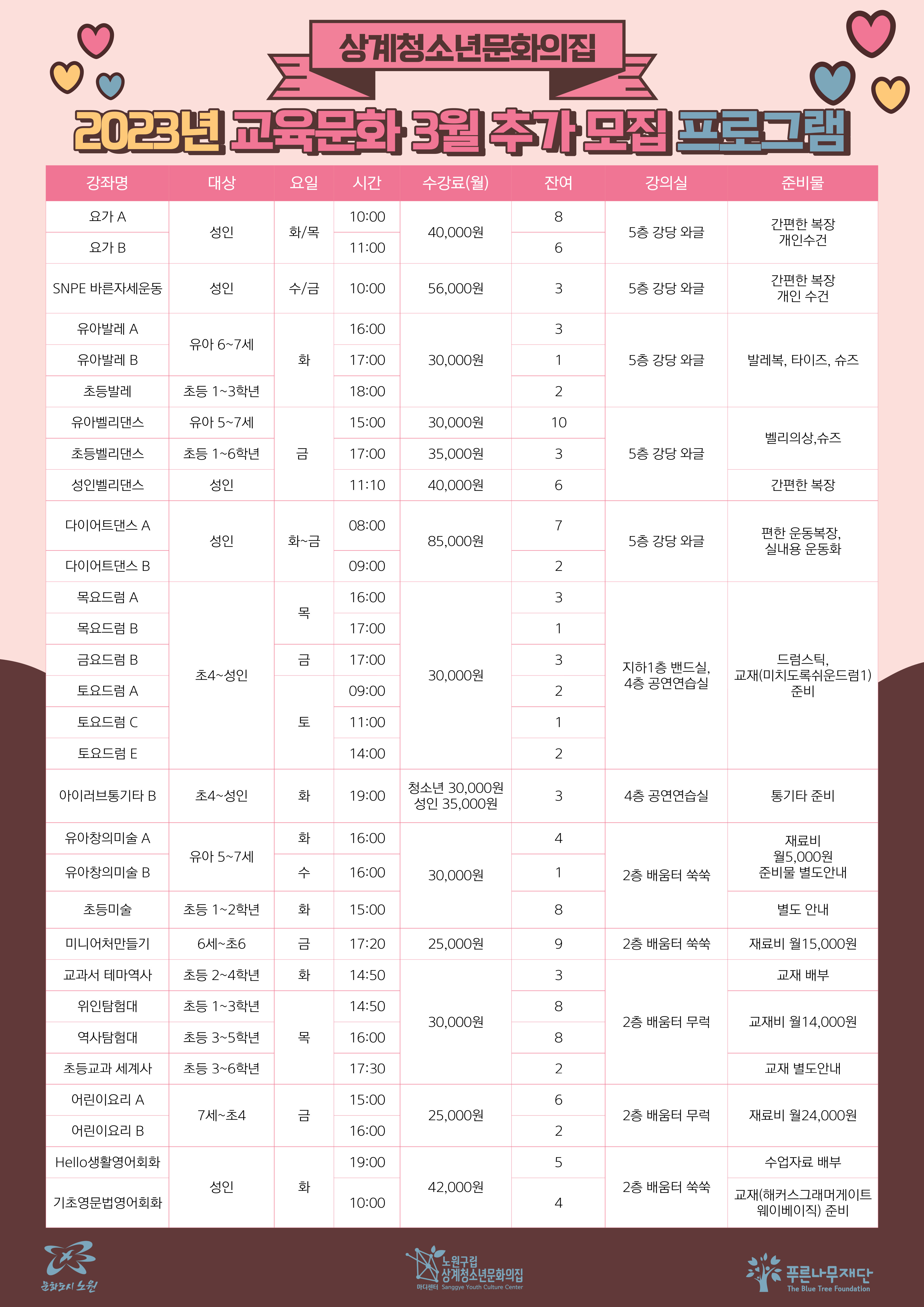 상계청소년문화의집 - 2023교육문화강좌 3월 추가 모집