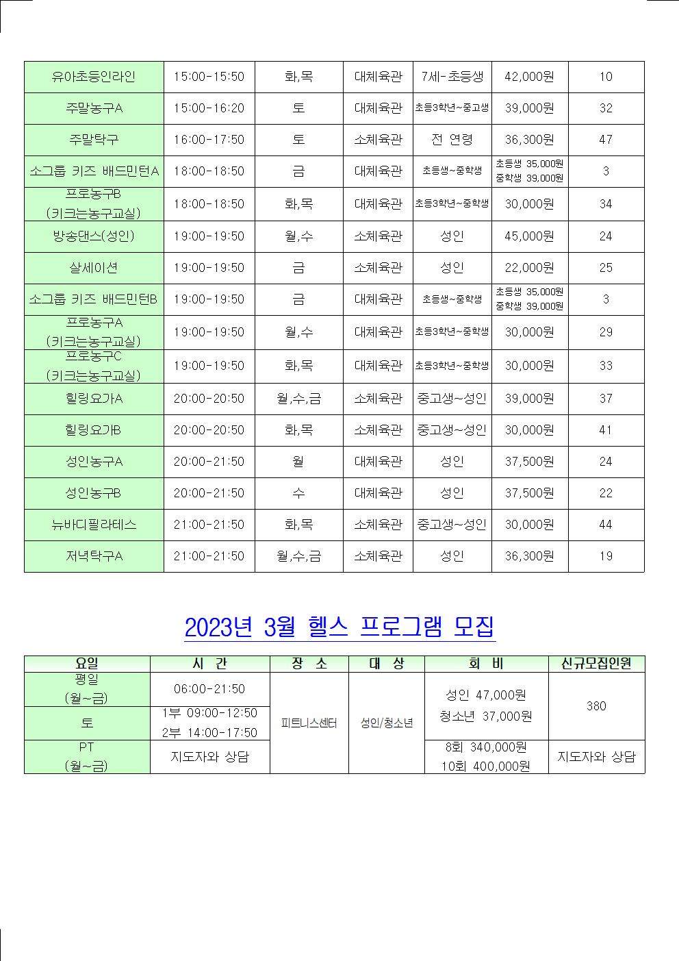 [월계동] 월계구민체육센터 - 2023년 3월 신규접수 안내