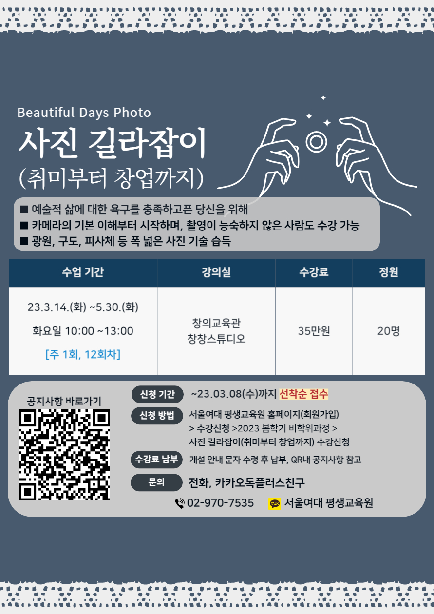 2023학년도 봄학기 평생교육원 역량과정- 사진 길라잡이 (취미부터 창업까지)