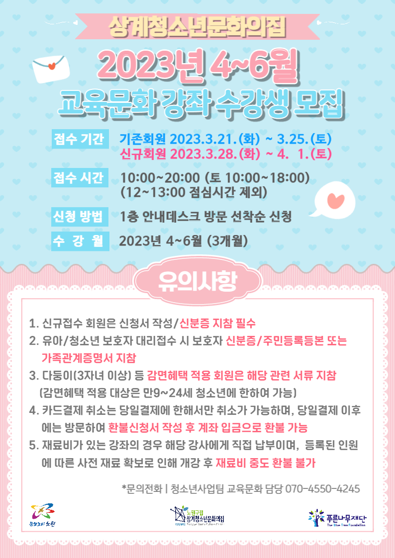 상계청소년문화의집 - 교육문화강좌 수강생 모집