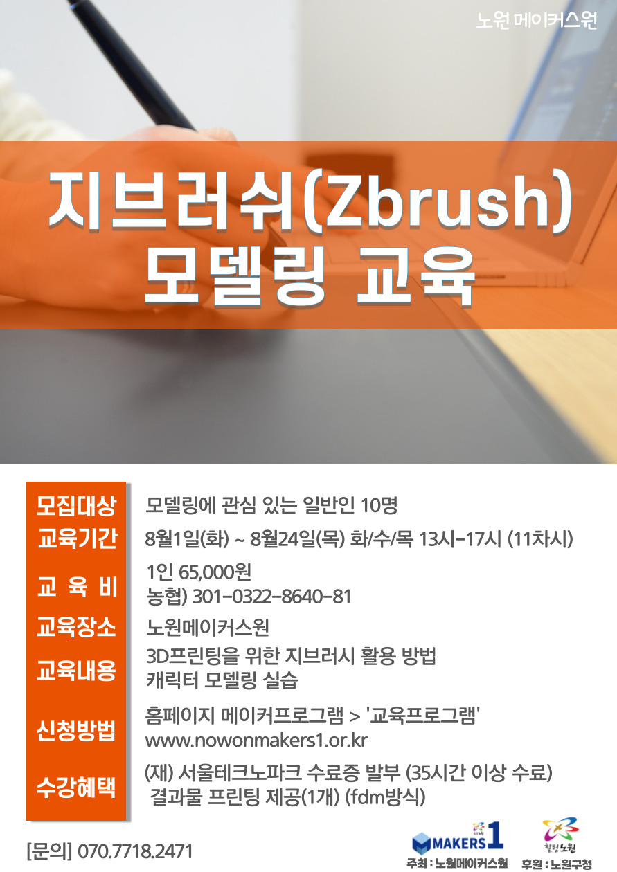 노원메이커스원 지브러쉬(Zbrush) 모델링 교육 수강생 모집 안내