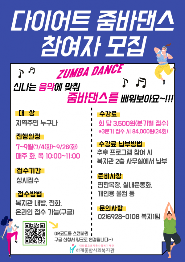 하계종합사회복지관 - 다이어트 줌바댄스 참여자 모집