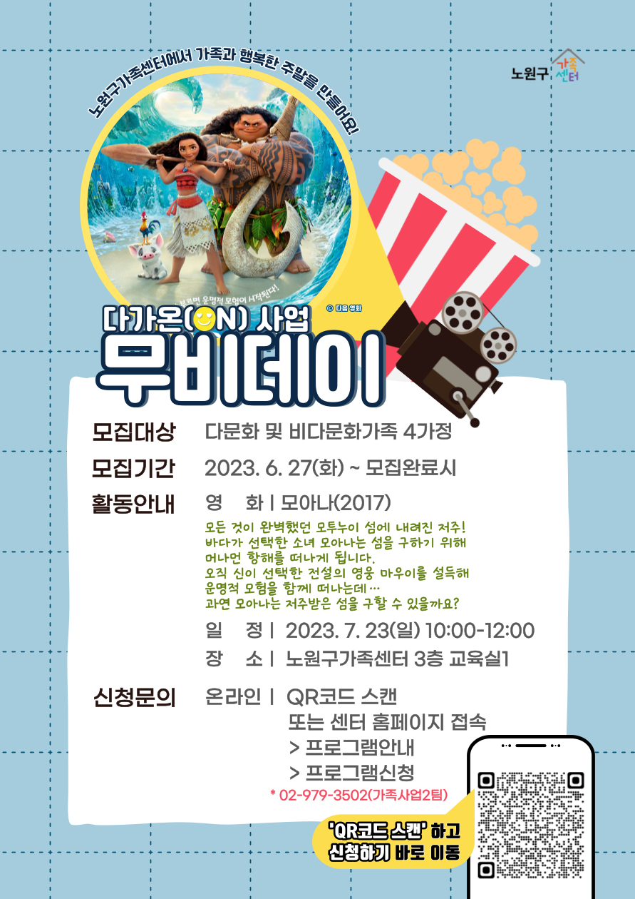 [공릉동] [노원구가족센터] 다가온(ON) 사업 무비데이 참여자 모집 안내(영화 모아나)