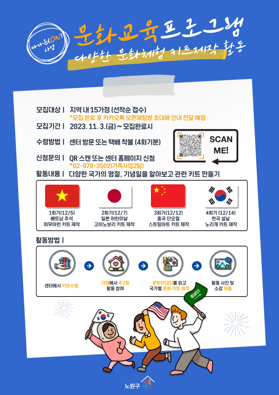 [노원구] [노원구가족센터] 다가온(ON) 사업 문화교육프로그램 4차시 참여 가정 모집