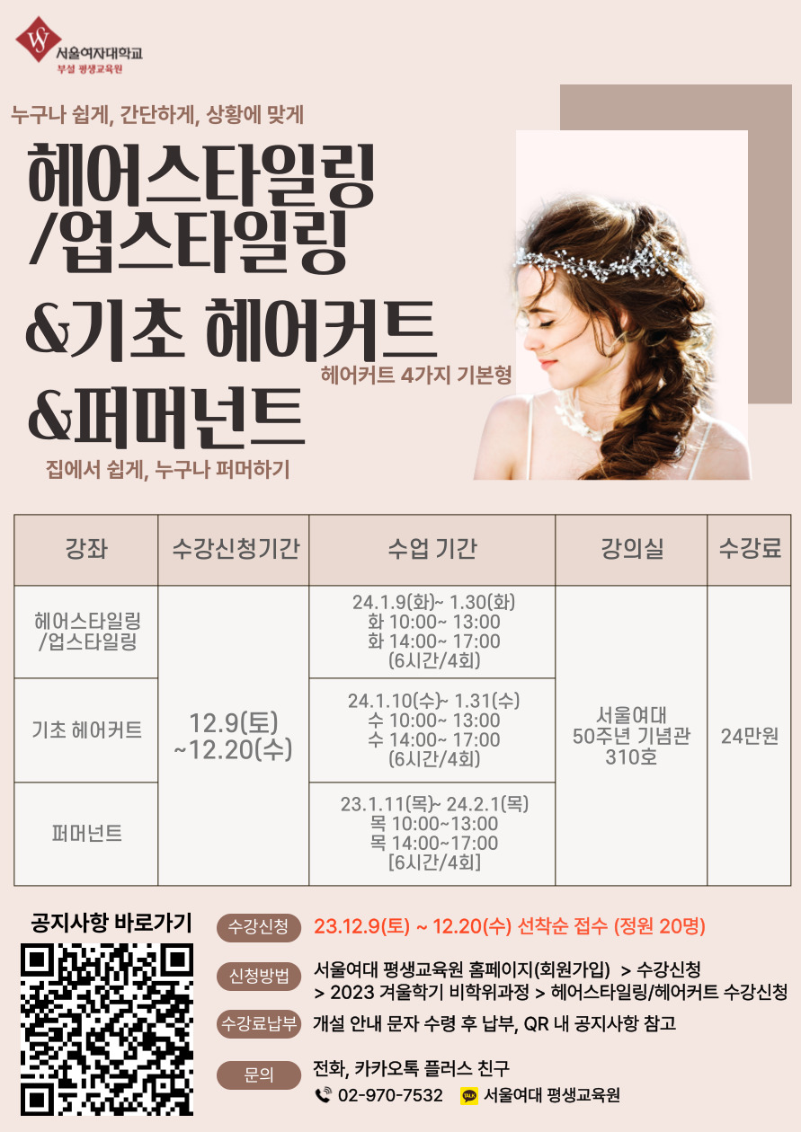 [공릉동] [서울여자대학교 평생교육원] 겨울학기 헤어 강좌 안내 (스타일링, 커트, 퍼머)