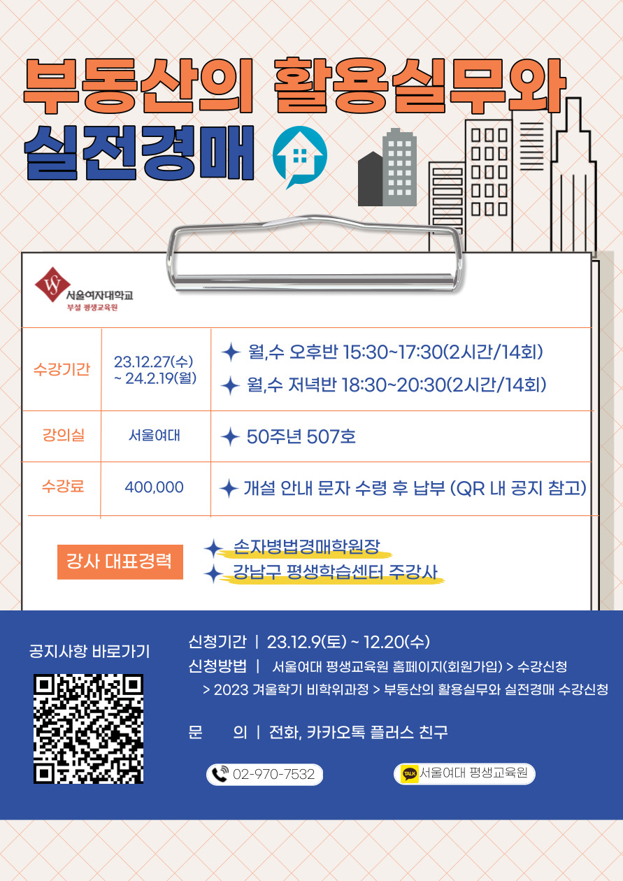 [공릉동] [서울여자대학교 평생교육원] 겨울학기 헤어 강좌 안내 (스타일링, 커트, 퍼머)