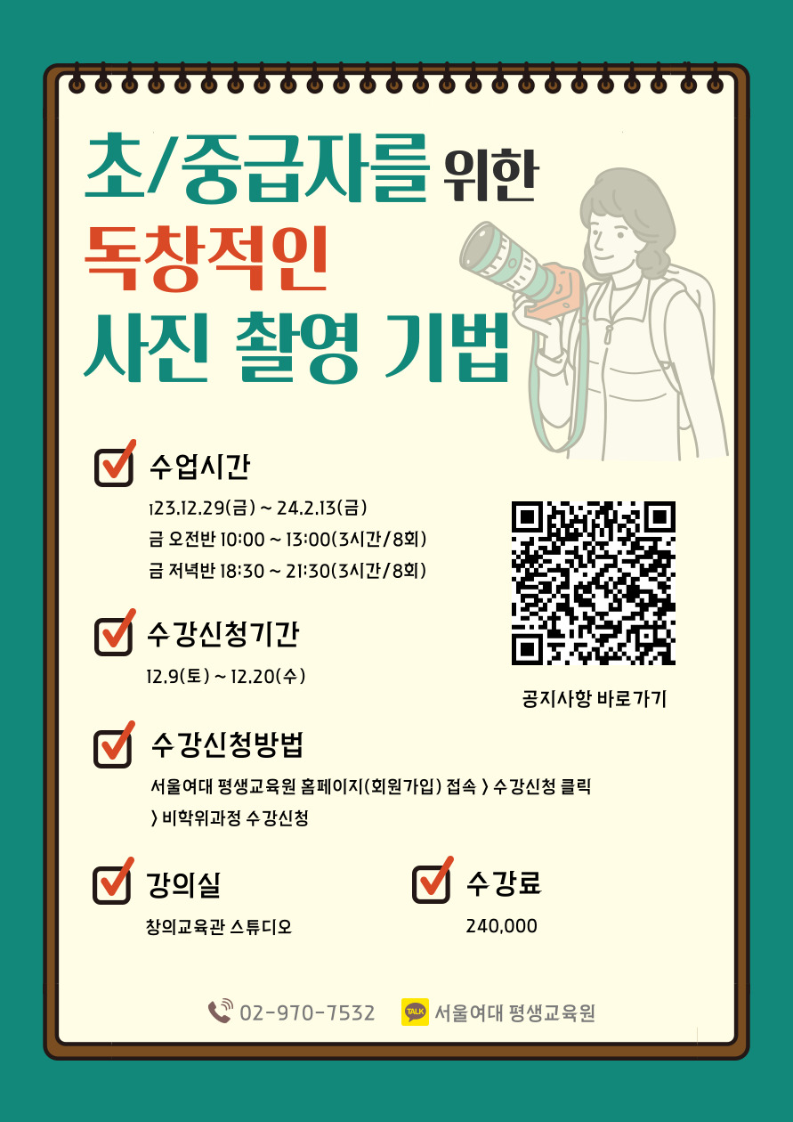 [서울여자대학교 평생교육원] 초/중급자를 위한 독창적인 사진 촬영 기법