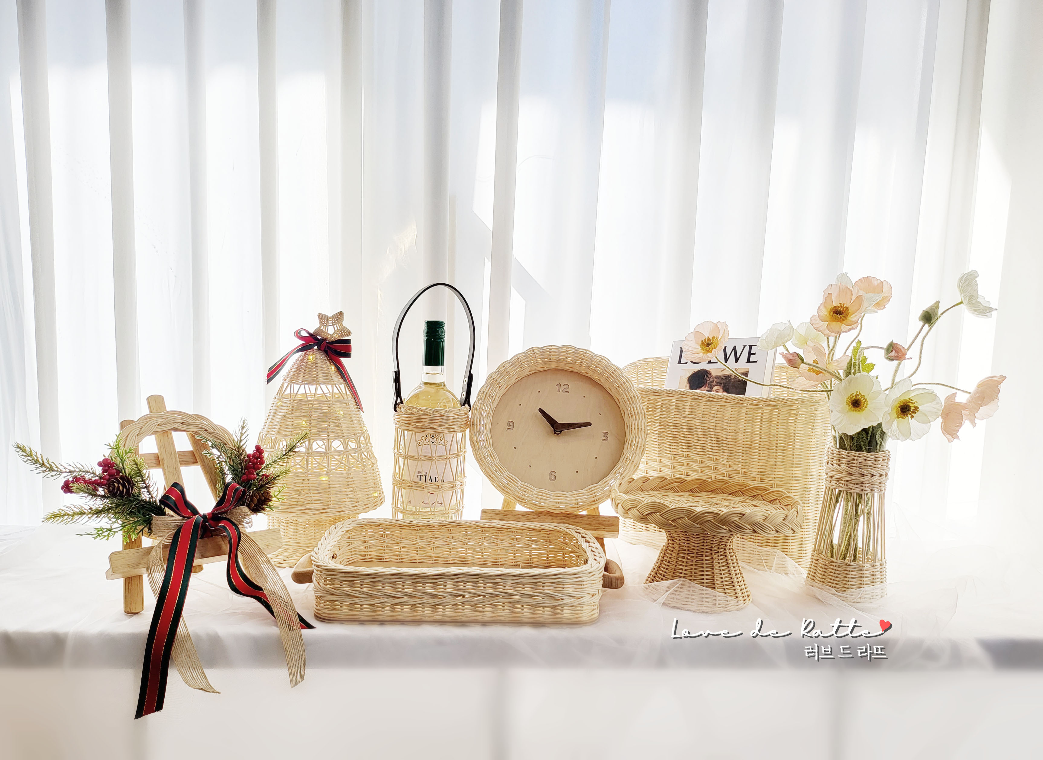 라탄공예| 강사소개 & 강좌설명 | 라탄공예를 처음 시작하시는 분들도 쉽게 하실 수 있도록 세심한 수업을 진행합니다. 일상 스트레스를 잠시나마 벗어날 수 있는 힐링하는 시간을 만들어 드리겠습니다. 홈인테리어가 유행인 요즘. 러브 드 라뜨 라탄 공방의 아름다운 라탄 작품만을 선별해 모든 분들이 직접 아름다운 라탄 소품을 만들어 가실 수 있도록 수업 합니다. 초등학생,학부모회, 기업 문화활동 등 여러 기관에서 요구하시는 니즈에 맞춰진 라탄공예 수업 입니다. |