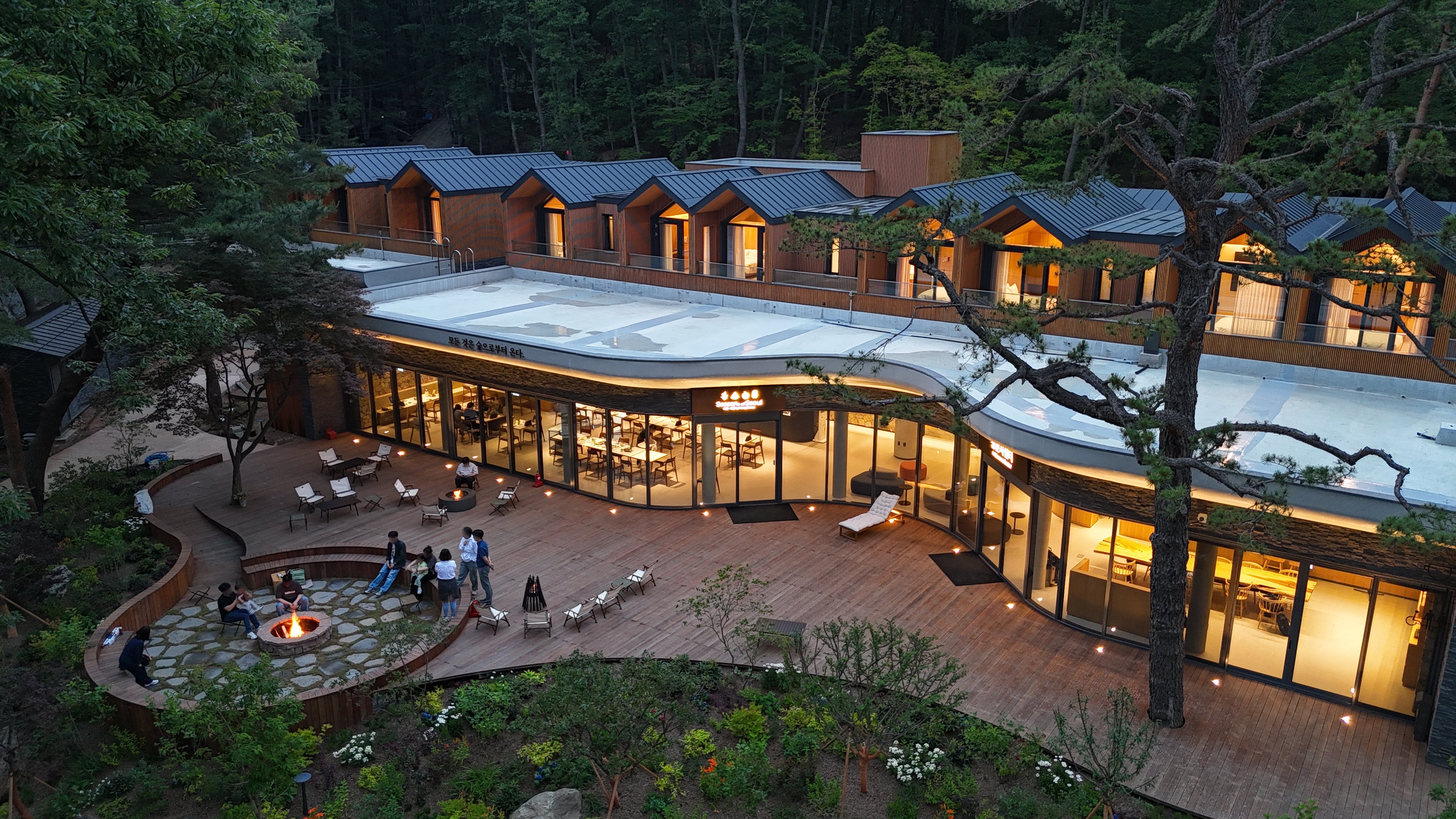 낮에는 따사로운 햇살을 즐길 수 있는 휴식처로, 밤에는 불멍존으로 운영되어 따뜻한 장작불과 함께 여유로운 시간을 보낼 수 있습니다.