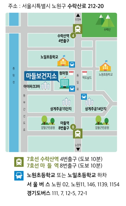 ● 주 소 : 노원구 수락산로 212-20, 마들보건지소 3층 어린이건강체험관