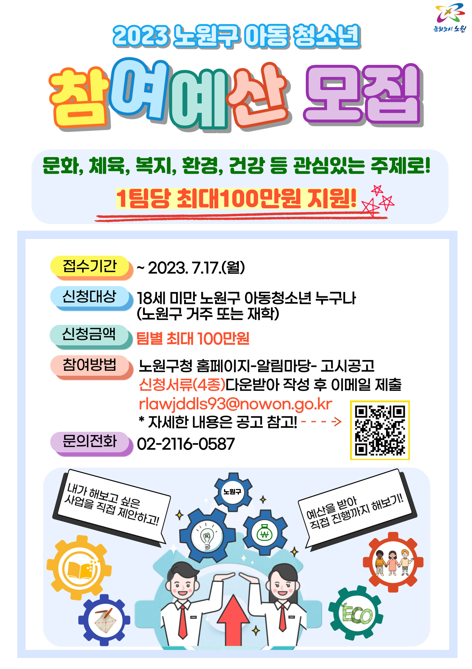 구청의 예산을 사용해 아동, 청소년 분들의 아이디어를 펼칠 수 있는 기회!♥
